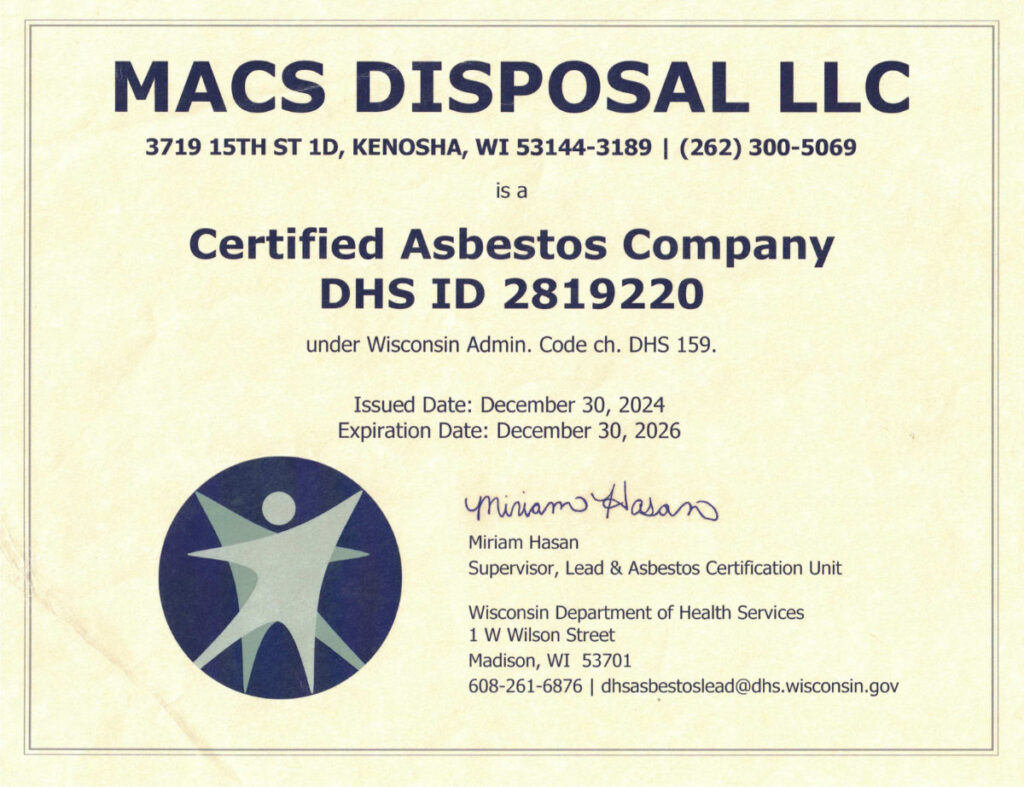 Mac’s Disposal provides professional asbestos cleanup and removal services performed in accordance with strict safety and environmental regulations. Asbestos requires careful handling to prevent exposure and ensure proper disposal. With certified training and compliant processes, Mac’s Disposal safely removes asbestos-containing materials from residential, commercial, and job site environments. The team focuses on protecting occupants, maintaining compliance, and delivering a safe, controlled cleanup from start to finish.